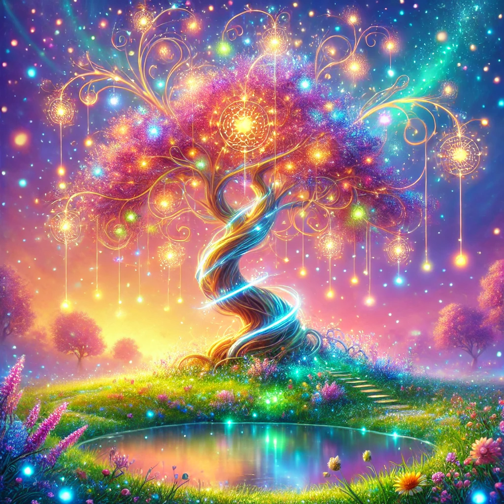 At the heart of the Sueniverse stands the Dreaming Tree, a living embodiment of imagination and wonder. Its ancient, glowing branches reach toward the sky, each adorned with tiny orbs of light—stars suspended by delicate strings.