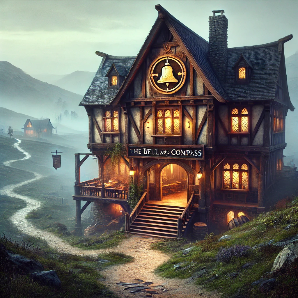 The Bell and Compass has grand wooden doors, heavy with age and history, yet they easily swing open for those in need. It exists as a constant within the Sueniverse, a beacon for wanderers and seekers alike. And if you find yourself lost in the Sueniverse, you can always find the Bell and Compass just down the road and to the left.